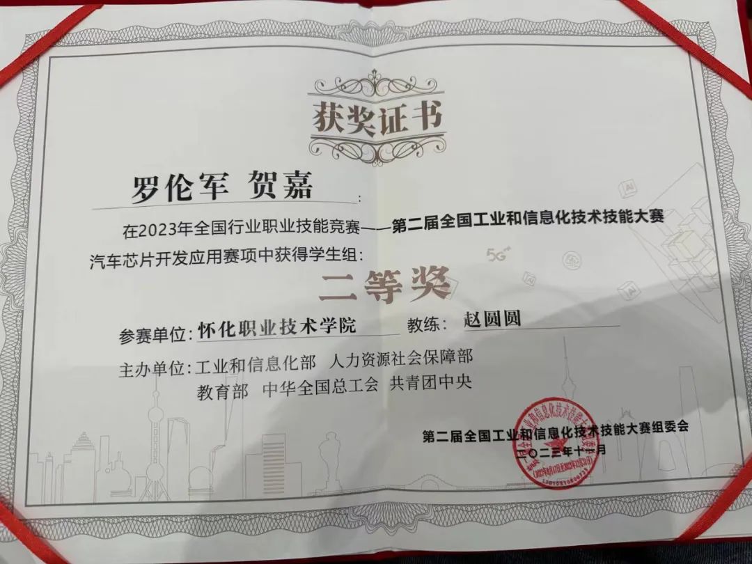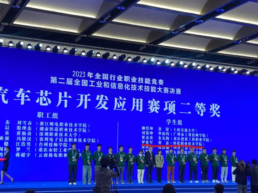 本次大赛汽车芯片开发应用赛项共有88支参赛队伍,其中职工组(含教师)44支,学生组44支,来自全国各地的176名选手展开激烈角逐。最终我校电子电气工程学院赵圆圆、唐东成两位老师指导的学生罗伦军、贺嘉喜获汽车芯片开发应用赛项二等奖!