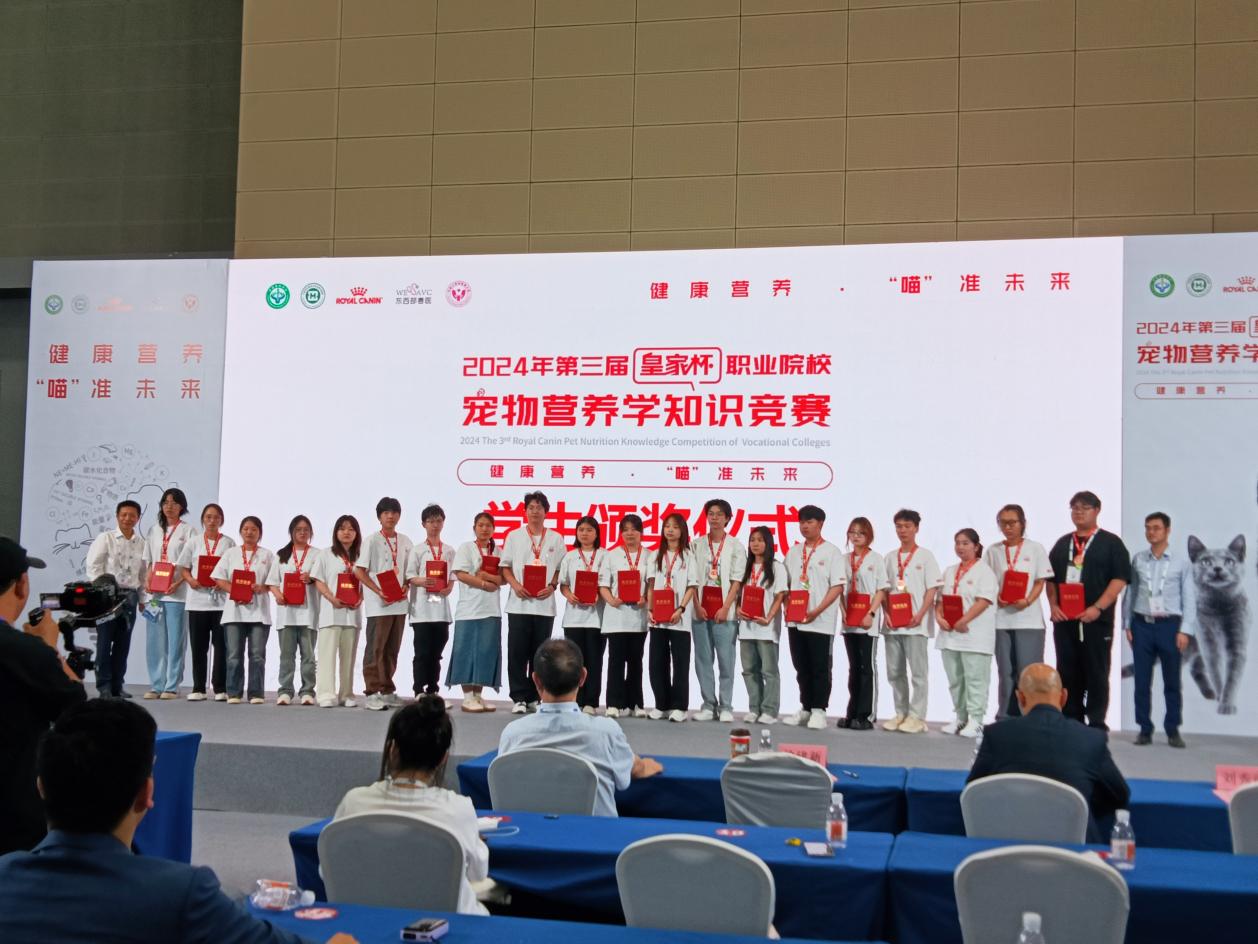 在2024年第三届“皇家杯”全国职业院校宠物营养学知识竞赛中,由张光友、苏五珍老师指导的学生袁喜萍,荣获三等奖。
