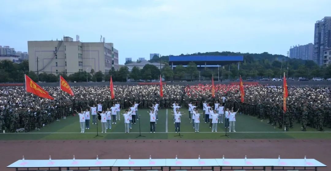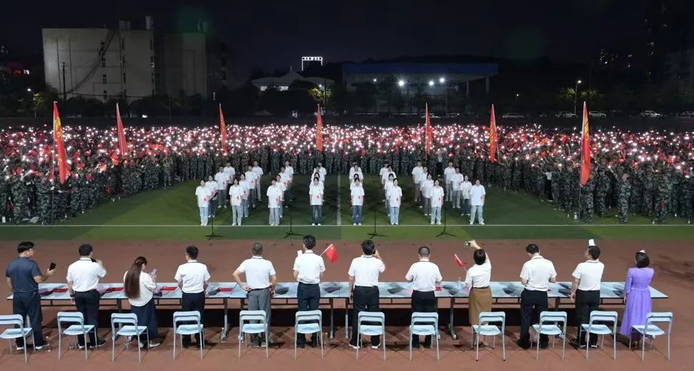 9月29日,学校举办庆祝中华人民共和国成立75周年军民联欢晚会。全体校领导、各部门处室主要负责人、各二级学院及7817名学生参加,大家用歌声和舞蹈表达对伟大祖国的热爱和对军人的崇高敬意。