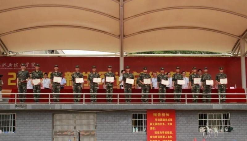 会上为96834部队颁授了锦旗,退役复学学生向学校报到。2024级新生方队代表依次进行分列式展示,同学们队列整齐、号声嘹亮、姿态标准、气势如虹,充分展现了怀职学子斗志昂扬、意气风发的精神风貌和军训取得的丰硕成果。先进学院、优秀教官、优秀教导员、优秀班主任等依次上台领奖,活动圆满结束。