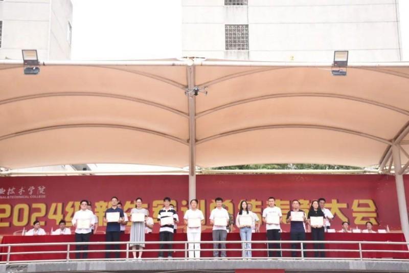 9月29日下午,学校举行2024级新生军训总结表彰大会。96834部队副参谋长吴翼材到会指导,党委副书记、校长刘学文作军训总结讲话,党委副书记张云龙宣读了军训先进集体和个人表彰决定,校领导罗向东、廖冬云、向敏、钟峰、刘鑫为受表彰集体及个人颁奖,各二级学院主要负责人及2024级新生参加。廖冬云主持大会。