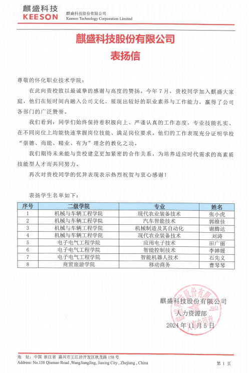 11月8日,我校在多功能厅召开了嘉兴市秀洲区优质企业校企合作交流座谈会。嘉兴市秀洲区金慧大学生社会工作服务中心副主任樊鹏奋携麒盛科技股份有限公司人力资源总监李伟峰、浙江鑫可传动科技有限公司副总经理陈光耀参加。学校党委副书记、校长刘学文,校领导肖宪龙出席,规划与对外合作处、机械与车辆工程学院负责人参加。