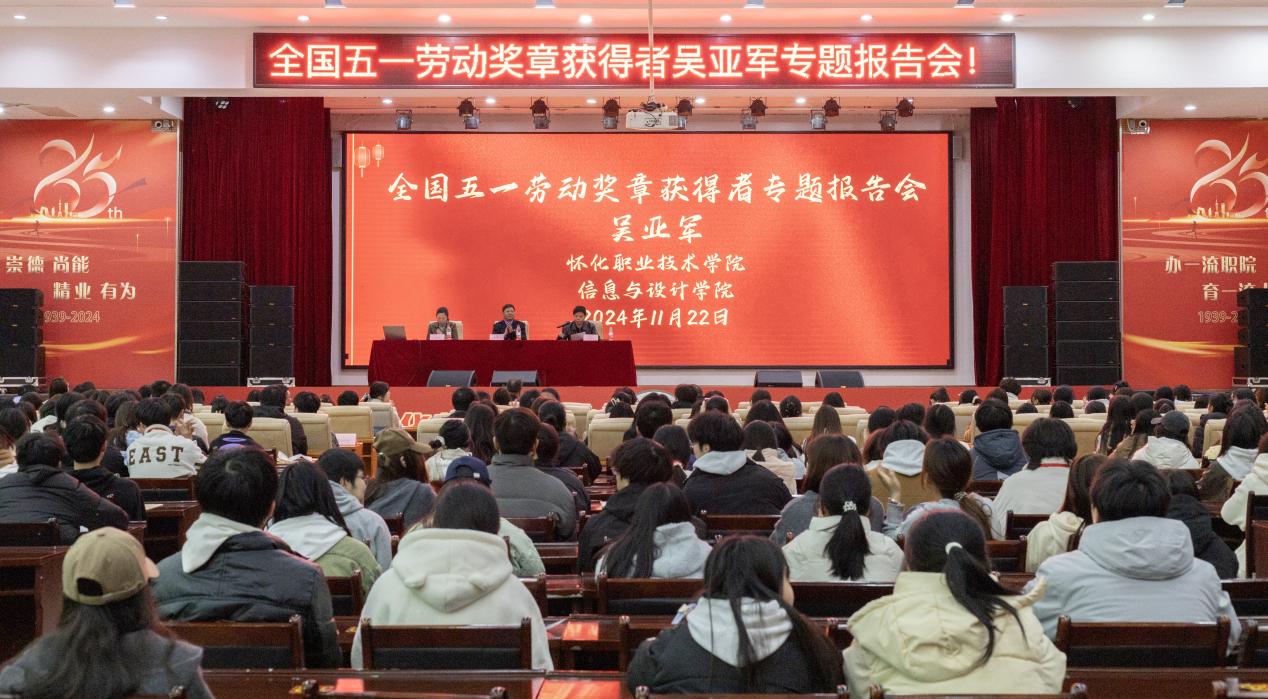吴亚军以《匠心筑梦 勇于担当》为题,从成长经历、工作室建设、将工匠精神融入工作学习等方面,分享自己朴实而又充满正能量的成长故事,为师生上了一堂有温度、有深度、有高度的弘扬劳模精神和工匠精神思政课,生动诠释了“执着专注、精益求精、一丝不苟、追求卓越”的工匠精神,使师生们深刻感受到劳动和创新的力量。报告会现场气氛热烈,不时响起阵阵掌声。