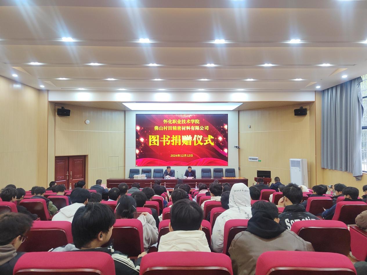 12月12日,学校在图书馆报告厅举行校企合作企业图书捐赠仪式。校企合作企业佛山村田精密材料有限公司向学校捐赠价值三万元图书,校领导肖宪龙代表学校接受捐赠,规划与对外合作处、招生就业处、图书馆和电子电气工程学院负责人参加活动。