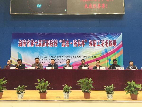 近日,湖南省第七届高职院校“嘉杰﹒院长杯”教职工羽毛球赛在湖南交通职业技术学院隆重举行,我院派出的代表队在本次比赛上再创佳绩,党委书记陈一翔和院长王聪田获得院领导组男双季军,副院长谢培荣获得男单B组第六名、纪检副书记高文获得女单B组第四名的好成绩。