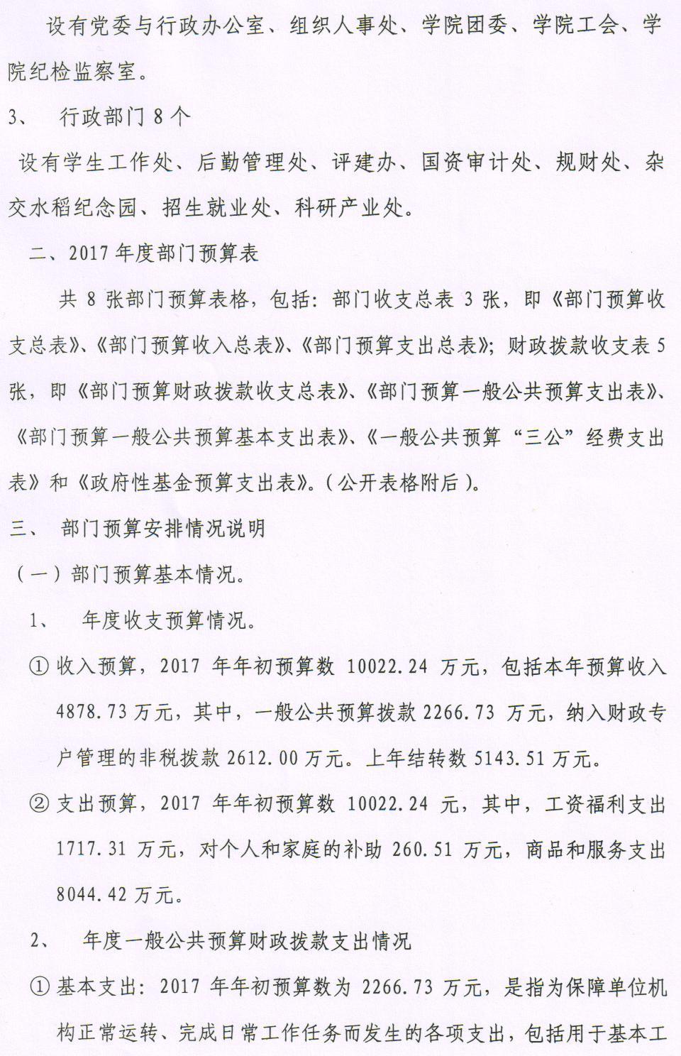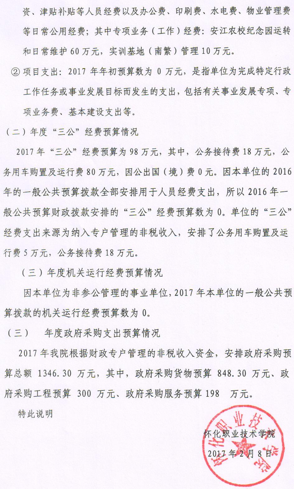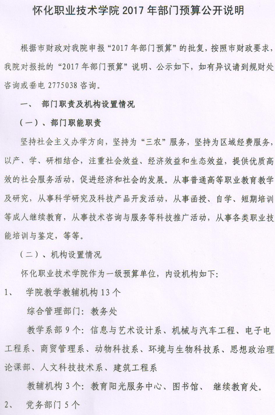 怀化职业技术学院2017年部门预算公开说明
