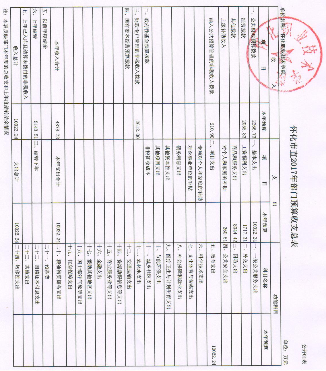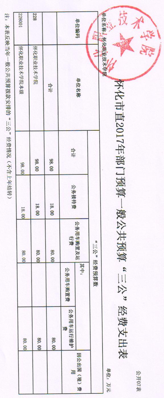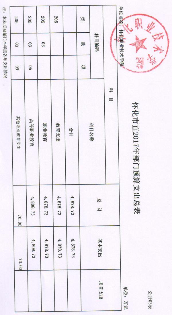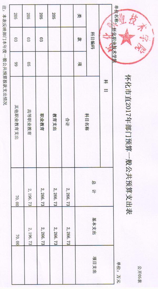 怀化职业技术学院2017年部门预算公开说明