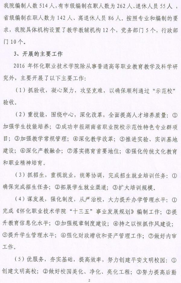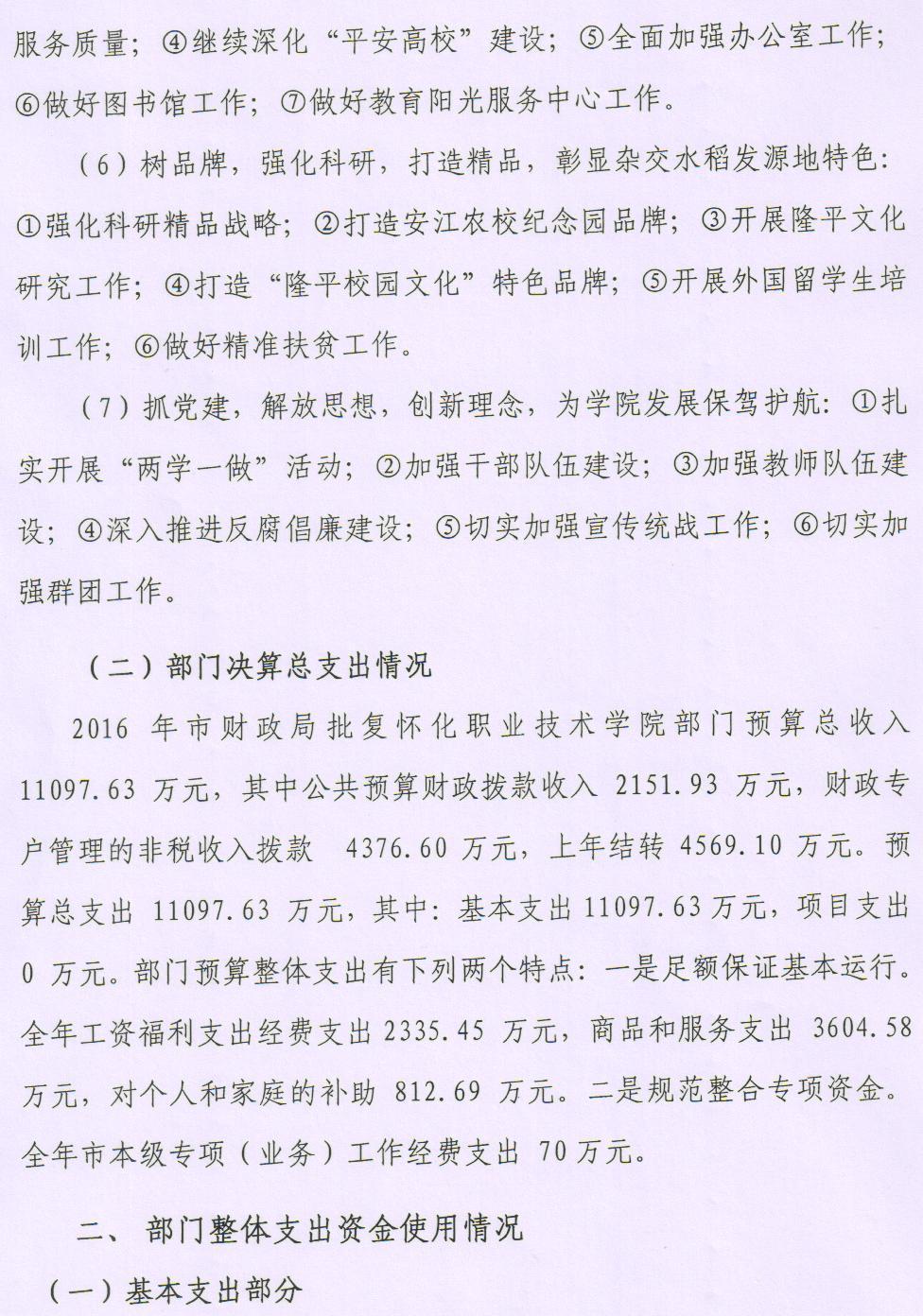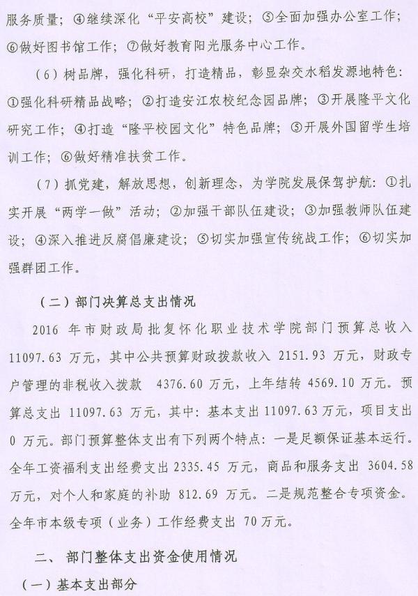 怀化职业技术学院院2016年部门整体支出绩效评价报告