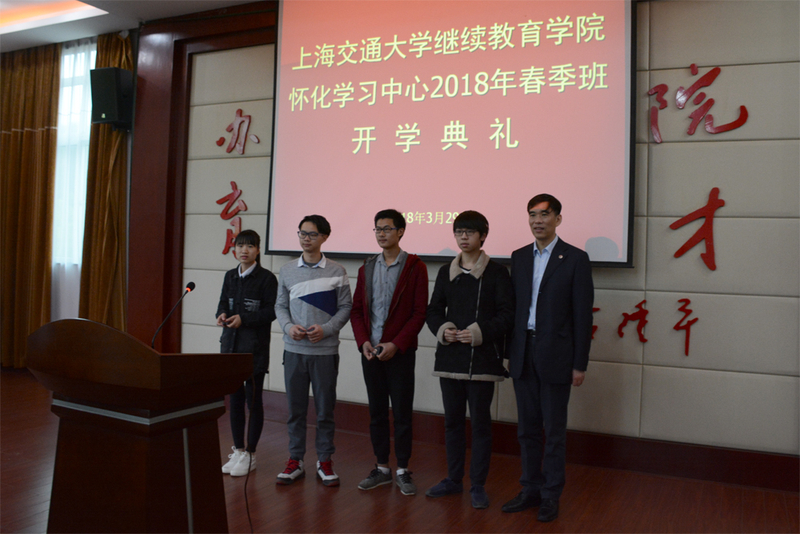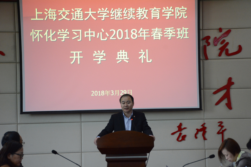 3月29日上午,上海交通大学网络教育专升本2018年春季班开学典礼在我院多功能厅举行。这是“上海交通大学继续教育学院网络教育怀化学习中心”落户我院后招收的第一届学生,共有55人,开设了计算机科学与技术、会计学、行政管理、工商管理四个专业。上海交大党委副书记、怀化市委常委、副市长朱健致辞、学院党委书记胡佳武致辞、院长王聪田主持会议,上海交大继续教育学院院长陶正苏、副院长刘冬暖出席开学典礼。