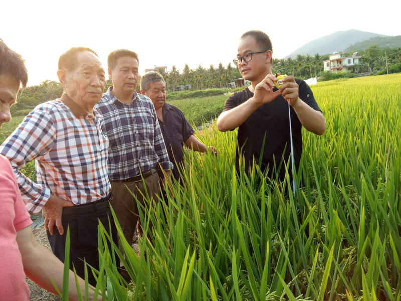 在海南科研基地试验田,袁院士与曾存玉、肖建平、朱世军等学院科研人员就超级杂交稻育种进行了交流指导。袁院士对学院在杂交水稻方面所取得的成就表示高度肯定,他希望学院全体科研人员在现有成绩的基础上砥砺前行,再接再励,实事求是搞科研,潜心攻关出成果,为国家作出新的贡献,造福世界人民。他希望学院能抓住时代契机,勇争时代先锋,朝更快更好发展!