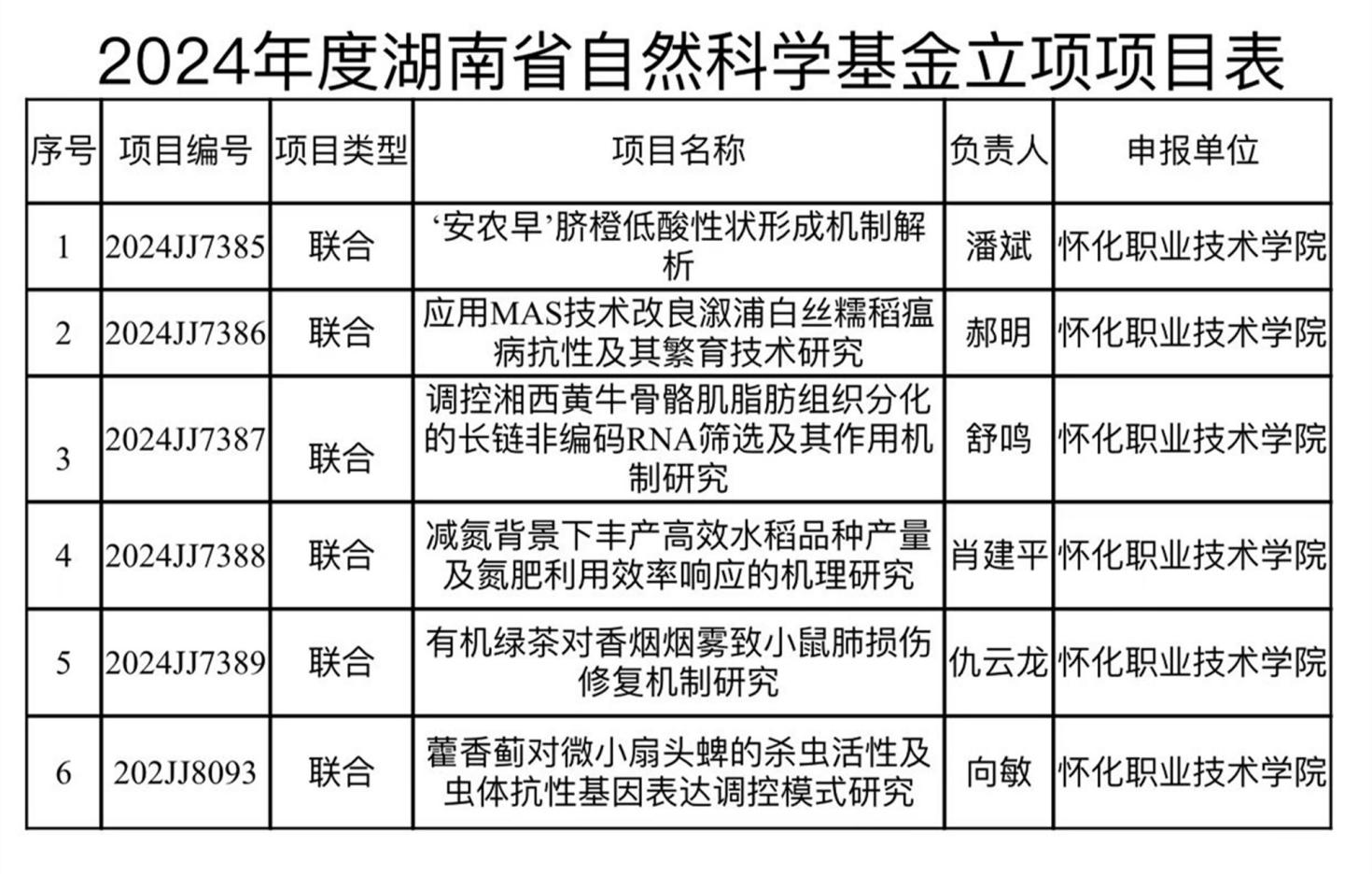 我校6项课题成功立项2024年度湖南省自然科学基金项目