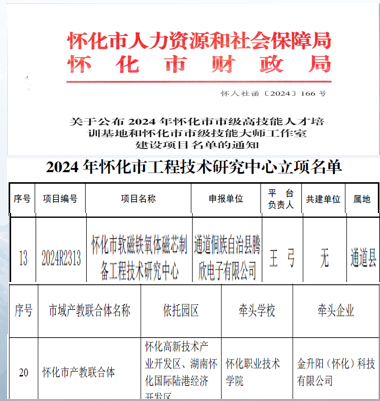 2024年成功立项怀化市软磁铁氧体磁芯制备工程技术研究、怀化市电工高技能人才培训基地