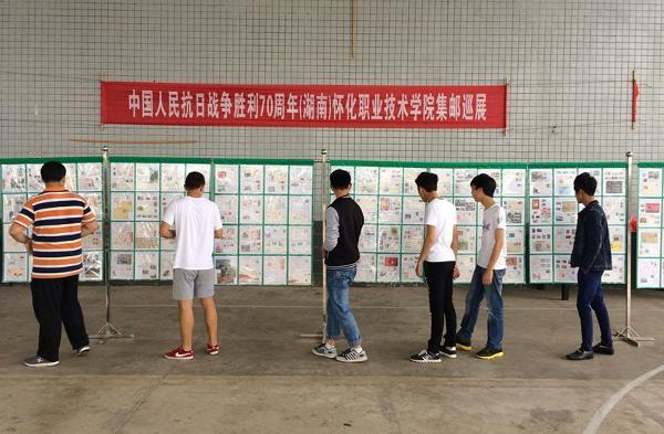 此次集邮巡展怀化市邮政分公司、怀化市邮协、洪江市邮协组织了近30部60框960个贴片抗战题材。全院3000多名师生员工观看了邮展。邮展规模之大、人数之多,开创了集邮活动进大学校园的新局面,达到了向大学生们进行爱国主义教育、国防教育和民族精神培养教育的目的。