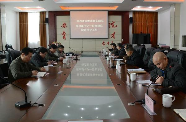 交流会上,副院长张圣喜周忠新书记一行介绍了学院基本情况特别是农口类专业办学情况。学院办学历史悠久,安江杂交水稻研究中心一直承担国家杂交水稻研究中心的科研任务,多年来成果显著,生产力转化率高;学院环境与生物科技系和动物科技系两个系部开展农口专业教学,培养的学生每年供不应求,受到企业好评;学院是国家商务部认可的杂交水稻技术培训基地,每年承担国家商务部主办的援外培训项目,对喀麦隆等国家的睡到技术人员开展培训;学院继续教育处每年承接省扶贫办主办的农业人员培训、农村科技骨干培训上千人次。