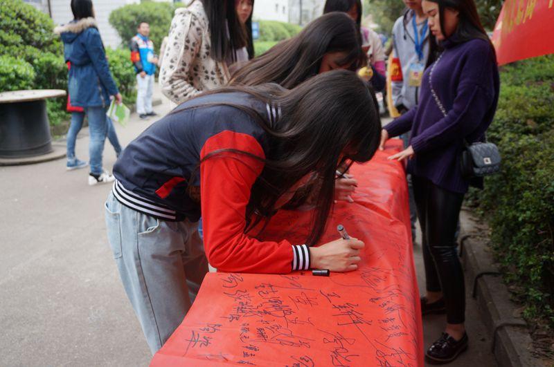 同学们纷纷签名表示支持环保、洁净校园