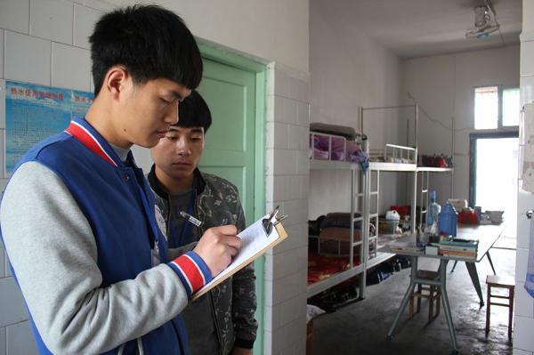 院学生会劳卫部成员认真检查宿舍卫生