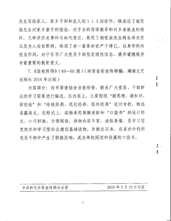 附:《中共怀化市委宣传不关于推荐全市读书活动2016年第一期重点阅读书目的通知》(怀宣【2016】5号)
