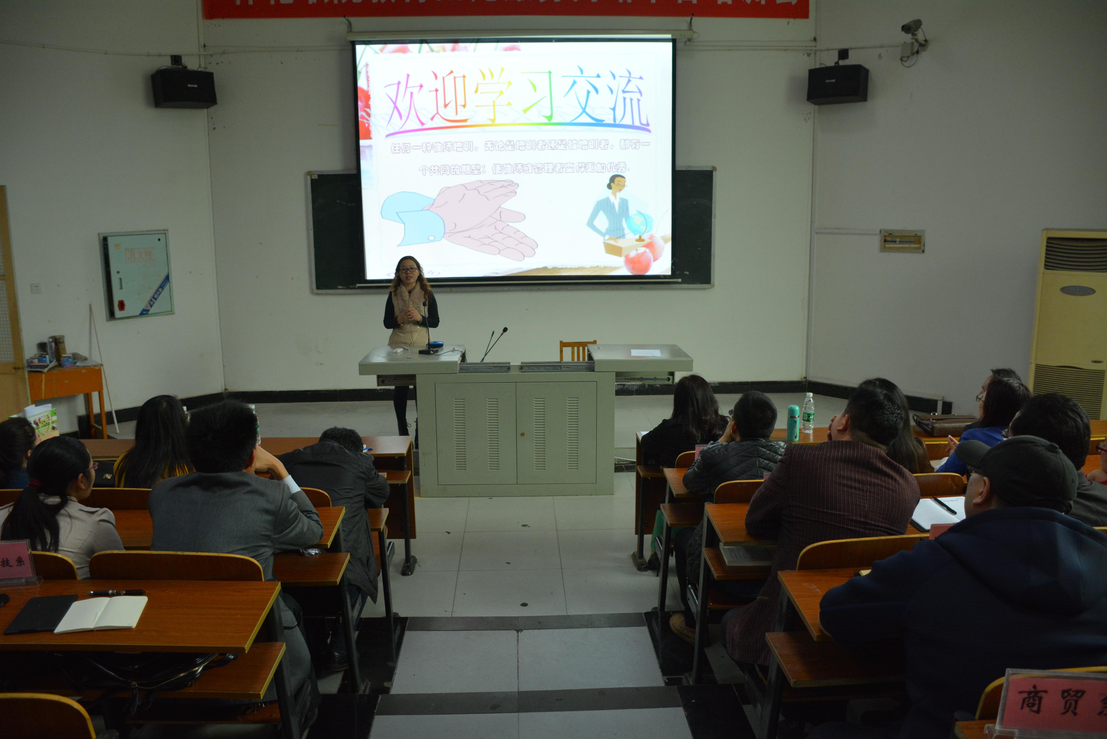 讲座伊始李玉华教授以《说课技巧与教学技能培养》为题目从教学技能的内涵、教学技能的种类、什么是说课、为什么要说课、如何说好课这五个方面做了深入剖析,并讲到说课应遵循的基本原则,即“脑中有理论、眼中有学生、胸中有材料、眼中有特色”。