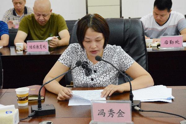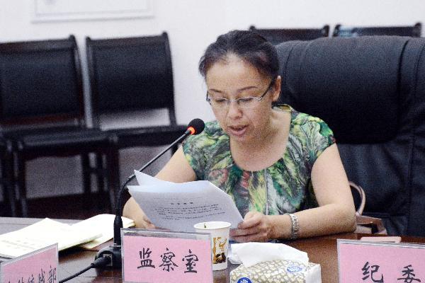 纪委副书记高文首先为大家宣读《中国共产党问责条例》。随后,纪委书记冯秀金就学习《问责条例》作出了重要发言。她简单的阐述了《问责条例》制定出台的三大背景、特点及其与《廉洁自律准则》、《纪律处分条例》的联系、区别等方面的内容。