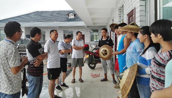 8月3日,我院党委副书记邬国盛、副院长张圣喜一行人冒雨前往中方县芦阳镇奥普隆杂交水稻研究基地,看望、慰问在此实习实训的种子生产与经营专业2015级学生。环境与生物科技系主任贺再新、宣传统战部部长向敏、班主任王立新老师随行,奥普隆公司副总经理吴厚雄也一同前往,并带去慰问的水果。