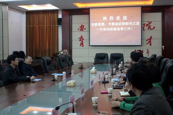 最后江部长一行在多媒体会议厅与院领导召开座谈会。胡佳武书记介绍了我院近几年发展情况,并说道,高铁开通后,省外生源大幅增加,招生情况也逐年转好,我们要利用好地域优势发展学院。江部长听取汇报后,对我院各项工作给予了充分肯定与赞扬,指出,我院有深厚的历史底蕴,是很好的励志教育基地,希望我院充分发挥办学特色,相信我院会越办越好。