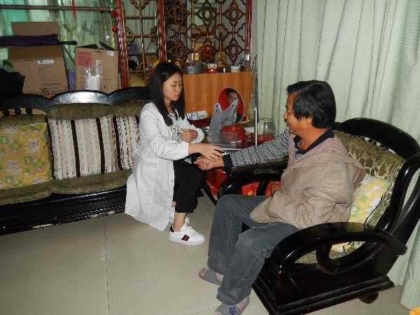 根据德善社区舒虹富主任的介绍德善社区流动人口达到95%,大部分家庭都能自食其力,但是有少部分家庭因为各种原因生活非常拮据。在舒主任的陪同下,罗向东副院长及机关三支部一行来到贫困家庭李先生家中,为李先生送去大米、食用油及现金。据李先生介绍,自己因为身体残疾丧失劳动力,92岁的老妈妈和瘫痪7年的儿媳妇更是让家里雪上加霜。当听到李先生经常头晕时,随行的医务工作者及时为李先生测量了血压、把脉、听诊,并为李先生的身体状况提供了合理的医疗建议和保健措施。