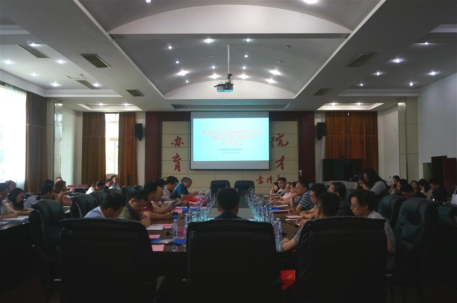 为加速推进湖南省大学生思想政治教育示范“成长七彩路”特色育人项目的实施进度,加强项目的实施管理,由我院承办的项目推进会于6月16日下午在图书馆多功能厅举行,怀化学院、吉首大学、张家界航空职业技术学院3所高校的项目相关人员、我院党委副书记邬国盛、副院长罗向东及各系部书记、辅导员、专职班主任近50余人参加了会议,会议由副院长罗向东主持。