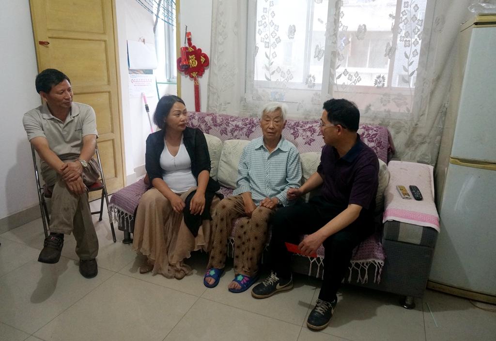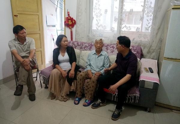 6月29日下午,市城南廉租房小区的一户人家中,屋外瓢泼大雨,屋内其乐融融。今年85岁高龄的聊秀玲奶奶家坐满了人,老人正拉着怀化职业技术学院党委书记胡佳武的手亲切地话家常,胡书记仔细询问老人的医保落实情况,叮嘱老人独自出门时一定要佩戴防走失牌。聊奶奶听后激动地感谢党和学院的关怀,作为原怀化地区农机校副校长张茂恒的遗孀,老伴去世已经20年,党和学院还没有忘记她,老人深受感动。