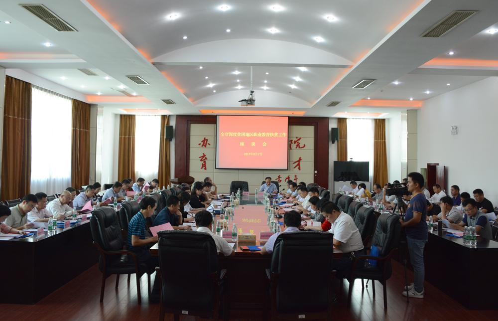 此次座谈会的目的是为了进一步发挥职业教育在精准扶贫中的积极作用,助推深度贫困地区脱贫攻坚工作,并对未来职业教育深度贫困地区对接、高职院校与深度贫困地区中职院校对接等问题进行了充分讨论。