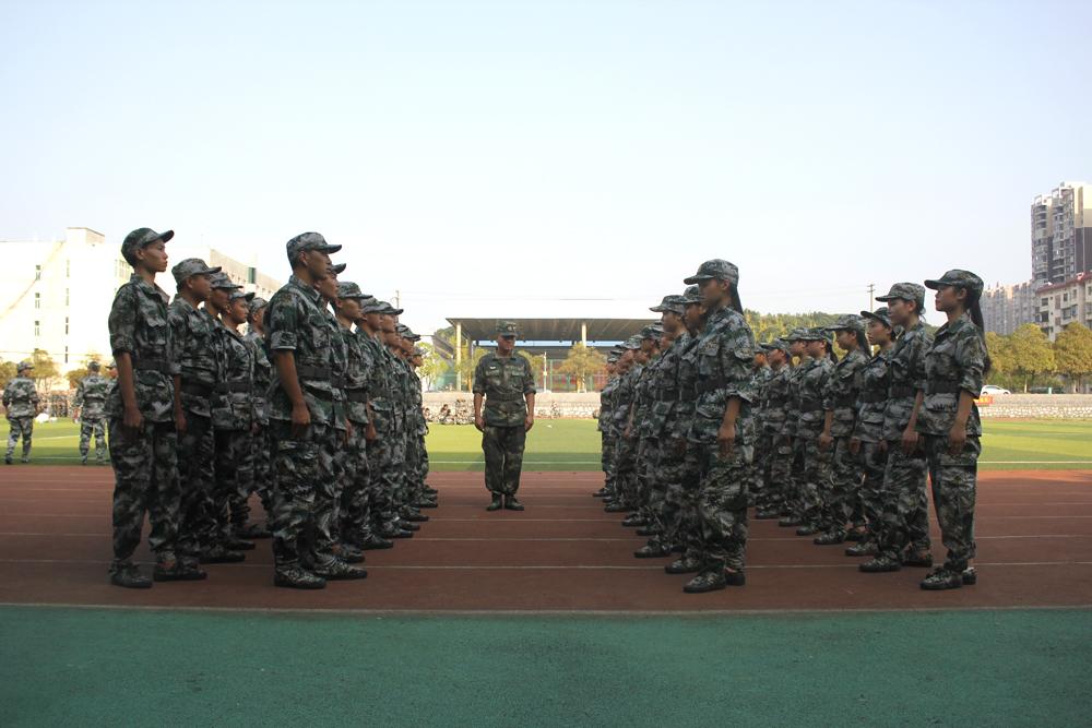 学生处处长易稳凯宣布军训规章制度及考核要求,武装部部长段志刚宣布军训连队建制。最后由党委副书记孙彤宣布2017年度军训正式开始。