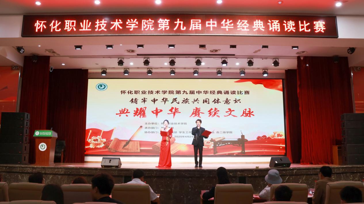 4月24日,我校在大会议室举办第九届中华经典诵读比赛。校领导廖冬云、向敏、李亚玲、刘鑫出席,二级学院师生代表共400余人参加。