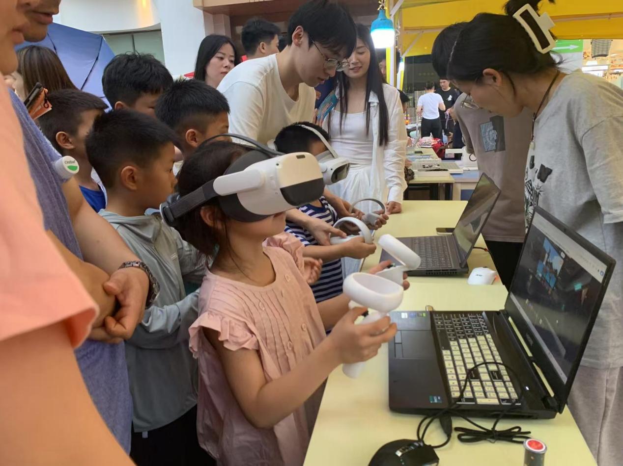 近日,怀化市首届“科学有亿点意思”科创市集活动在红星街道武陵社区大美时光里广场火热举行。文化与创意学院创新运用VR虚拟现实技术,生动呈现水稻培育全周期,打造沉浸式科普体验,成为现场人气焦点。